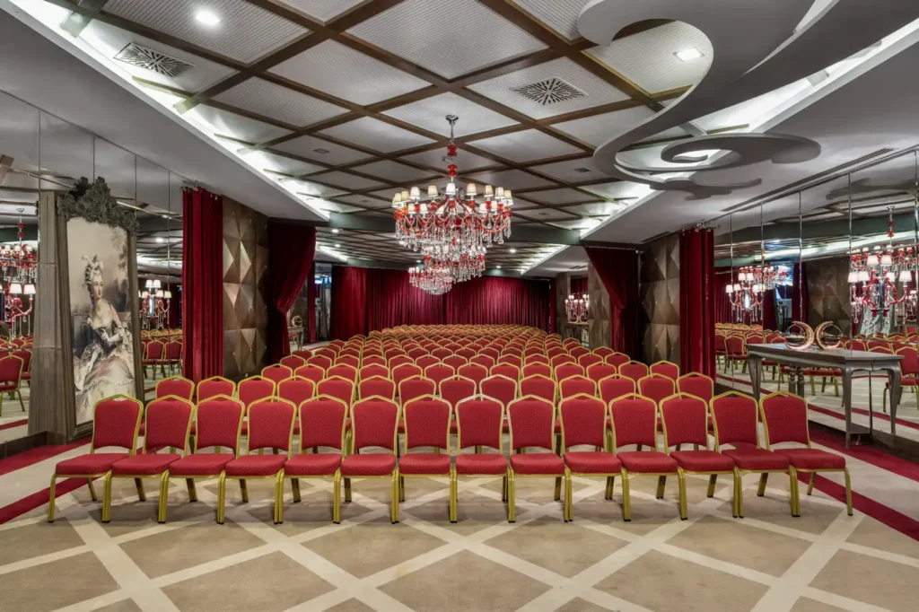 1 meeting rooms of 620 sqm areas available for meetings, conferences, events, wedding ceremonies; as well as large foyer areas of 150 sqm available for use. Enjoy the privilege at Kaya Palazzo Kyrenia.